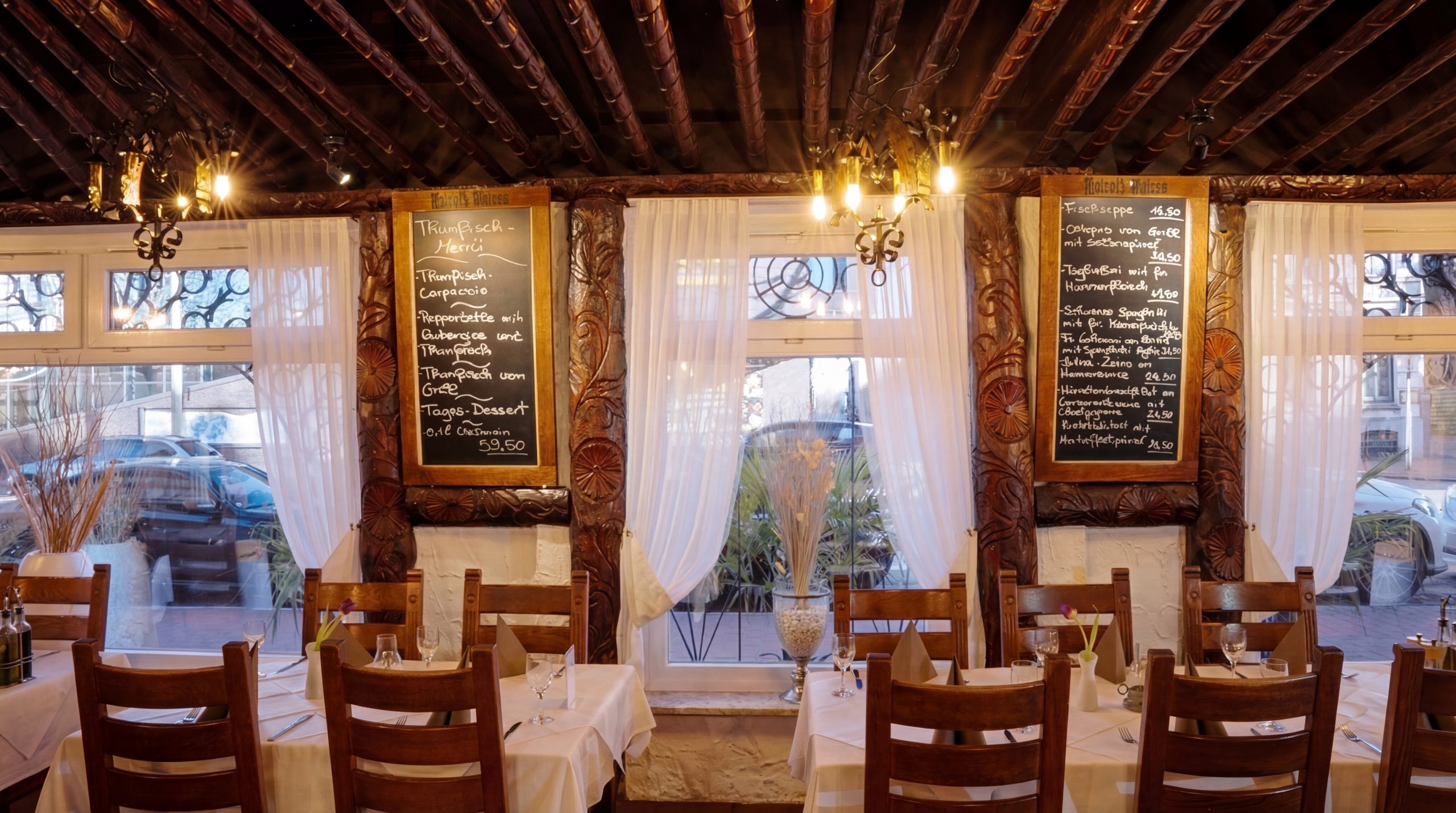 Schon beim Betreten unseres Restaurants spürt man die besondere Atmosphäre: warme Holzelemente, liebevoll gedeckte Tische und ein rustikales, zugleich elegantes Ambiente laden zum Verweilen ein.